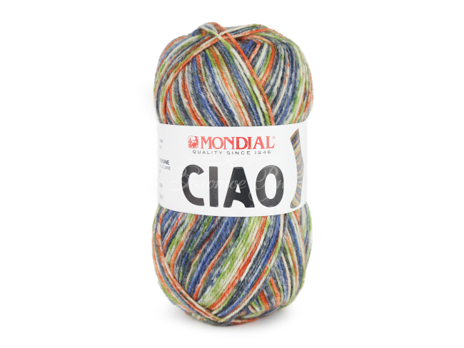 Mondial Ciao (100) гр. - классическая носочная пряжа из смеси  шерсти и полиамида  с довольно высокой круткой, которая обеспечивает прочность и долговечность изделий