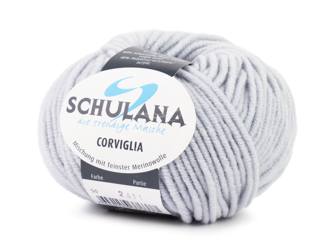 Schulana Corviglia (50) гр. - пряжа из смеси мериноса и полиакрила соединяет в себе лучшие качества натуральных волокон и синтетики - она мягкая, теплая, пушистая, и в то же время прочная, изделие "дышит", хорошо держит форму, не садится и не растягивается.